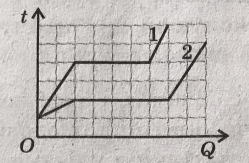 55 балів. Металеві бруски 1 і 2 однакової маси по черзі поміща- ють у плавильну піч. На рисунку наведено графіки за- лежності температури брусків від отриманої кількос- ті теплоти. У якого металу питома теплота плавлен- ня більша, у скільки разів. Поясніть свою відповідь.Металеві бруски 1 і 2 однакової маси по черзі поміща- ють у плавильну піч. На рисунку наведено графіки за- лежності температури брусків від отриманої кількос- ті теплоти. У якого металу питома теплота плавлен- ня більша, у скільки разів. Поясніть свою відповідь.