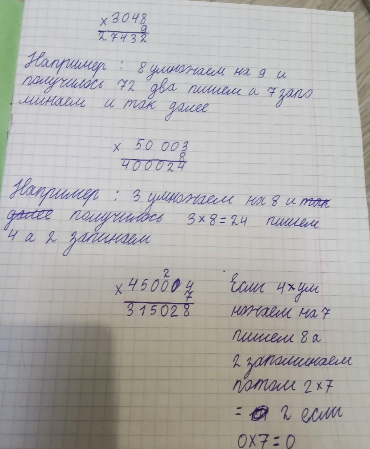 2. Выполни умножение с объяснением: 3 048*9 50 003*8 45 004*7
