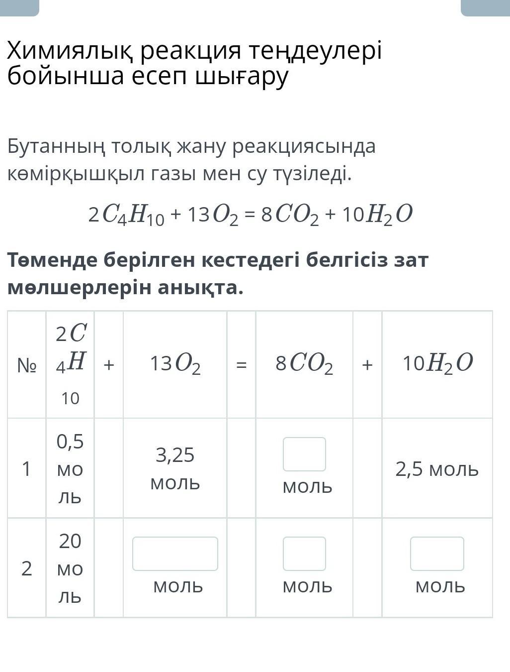 Төменде берілген кестедегі белгісіз зат мөлшерлерін анықта.