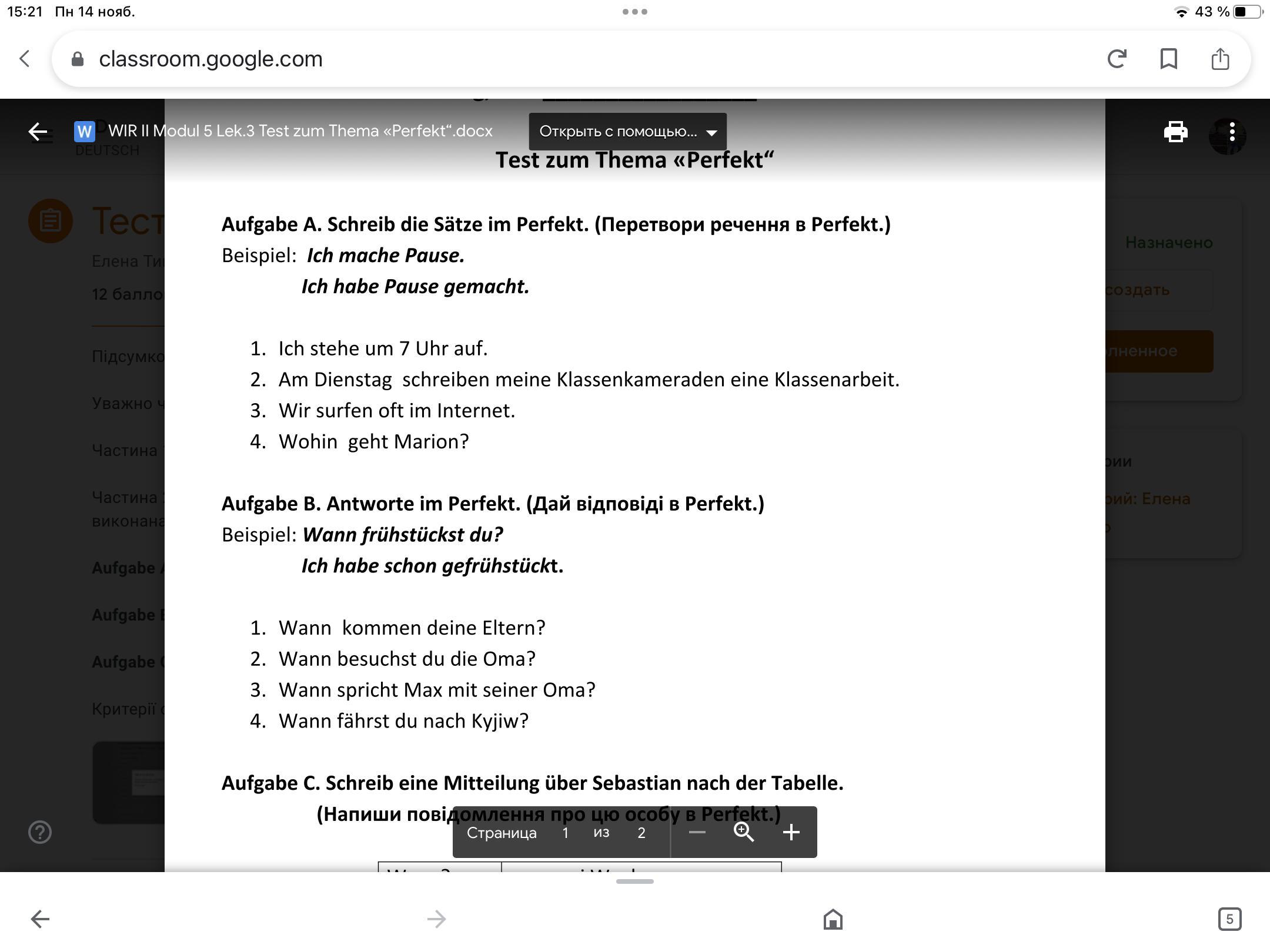 2. Am Dienstag haben meine Klasskameraden eine Klassarbeit geschrieben.