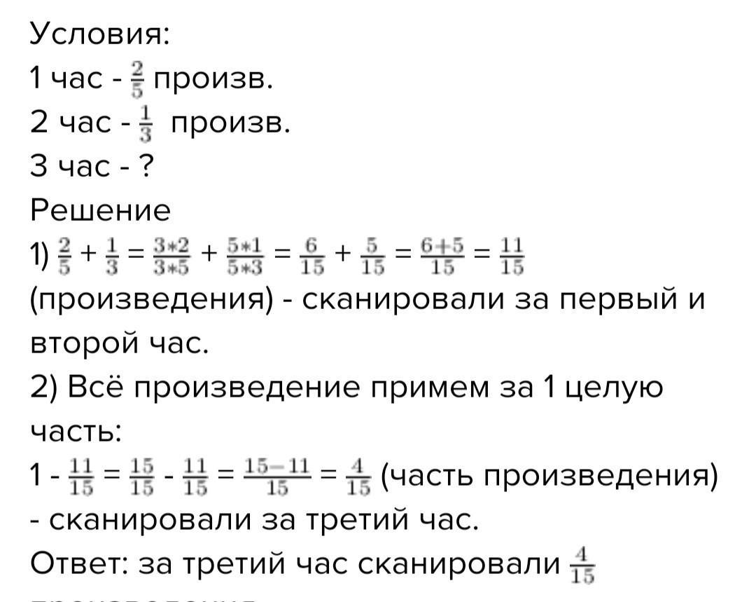 На сканере за первый час отсканировали Второй час 1 за третий час роизведения отсканирована за третий час? 3 2 5 9 произведения, за остальную часть. Какая часть