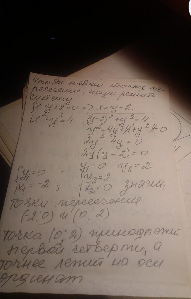 не виконуючи побудови знайдіть координати точки перетину прямої x-y+2=0 з колом x^2+y^2=4 в першій координатній чверті