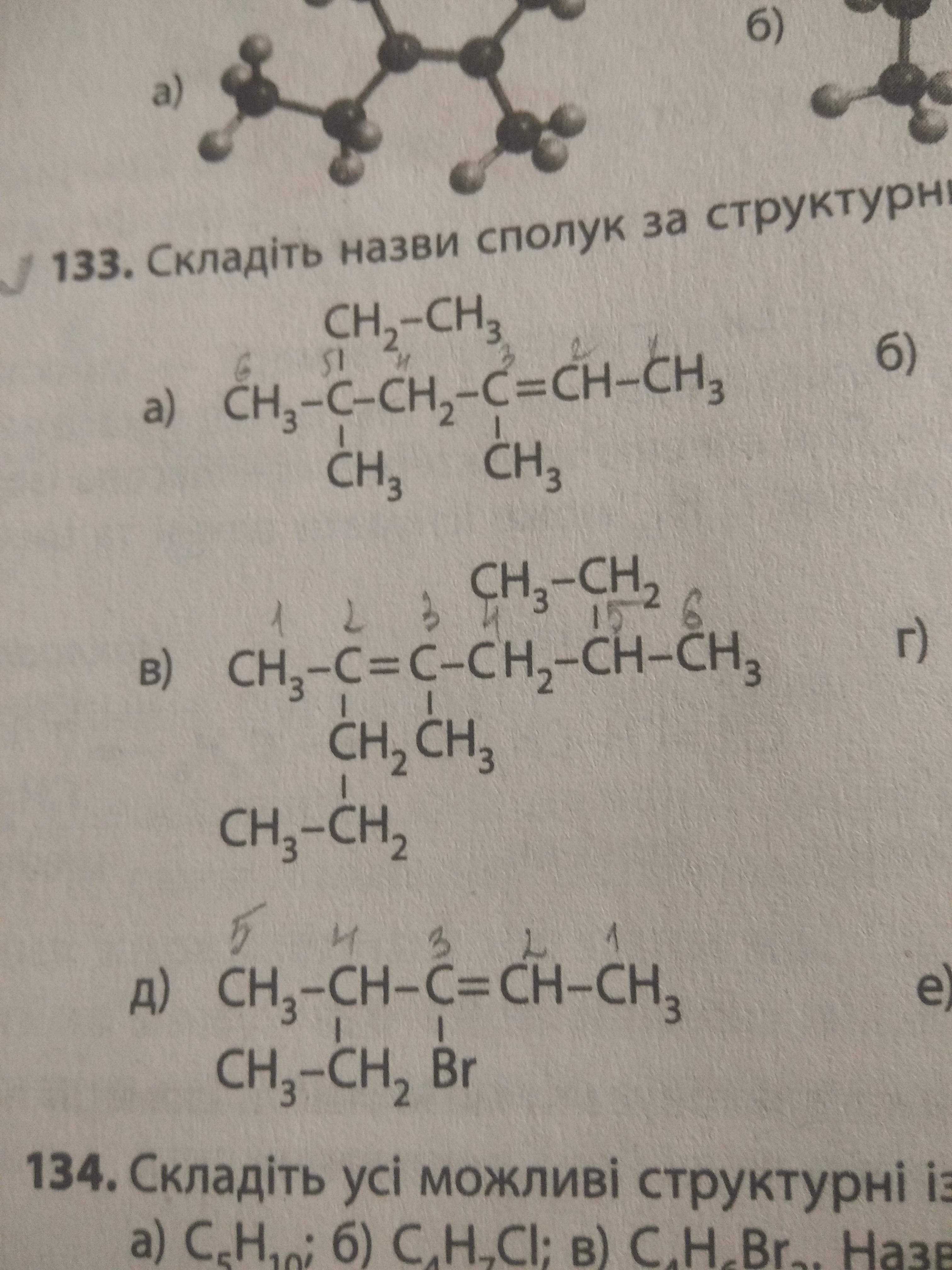 Складіть назви сполук за структурними формулами. Нужно только а) и д)