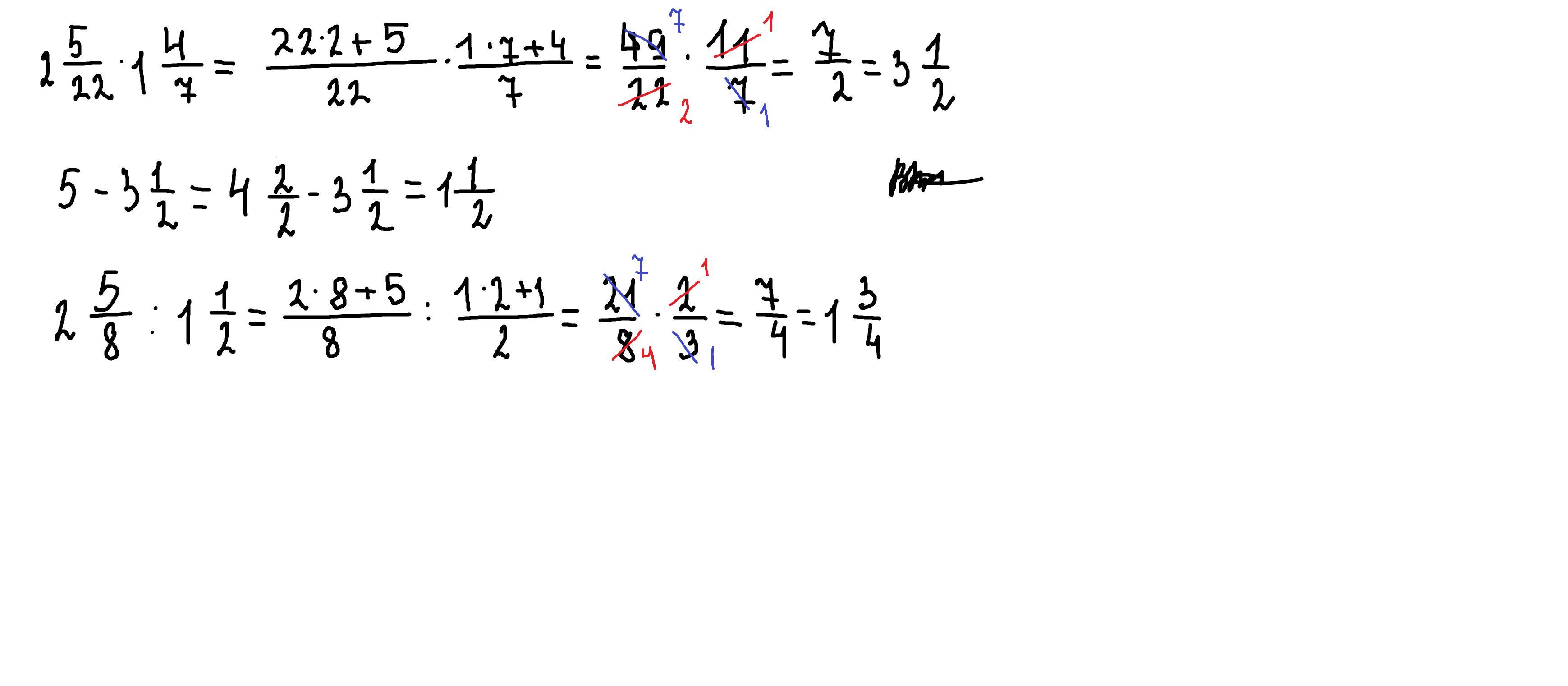 Пошаговое объяснение:1) 2 5/22 * 1 4/7= 49/22 *11/7= 7/2= 3 1/2
