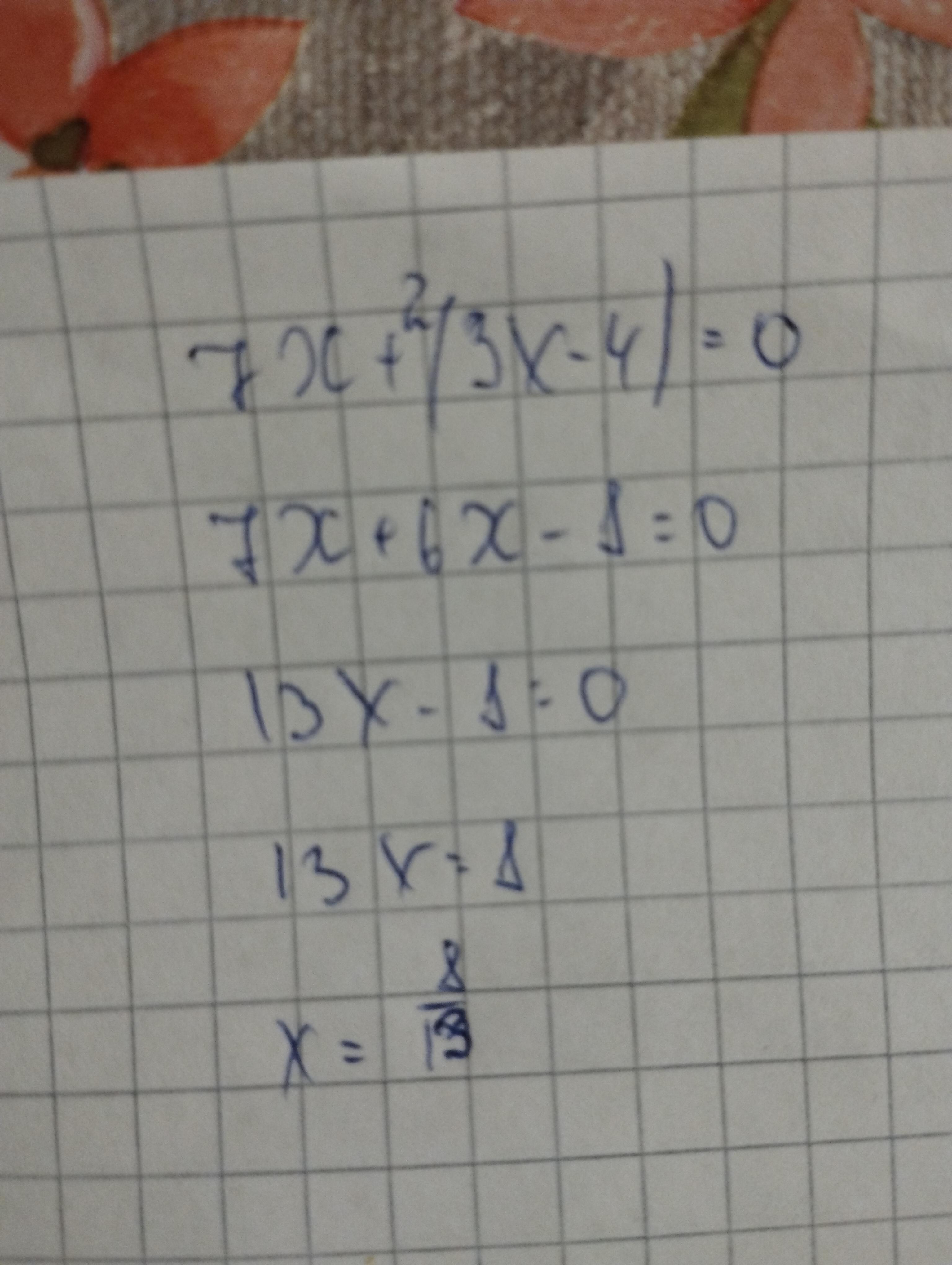 7х+2(3х-4)=0