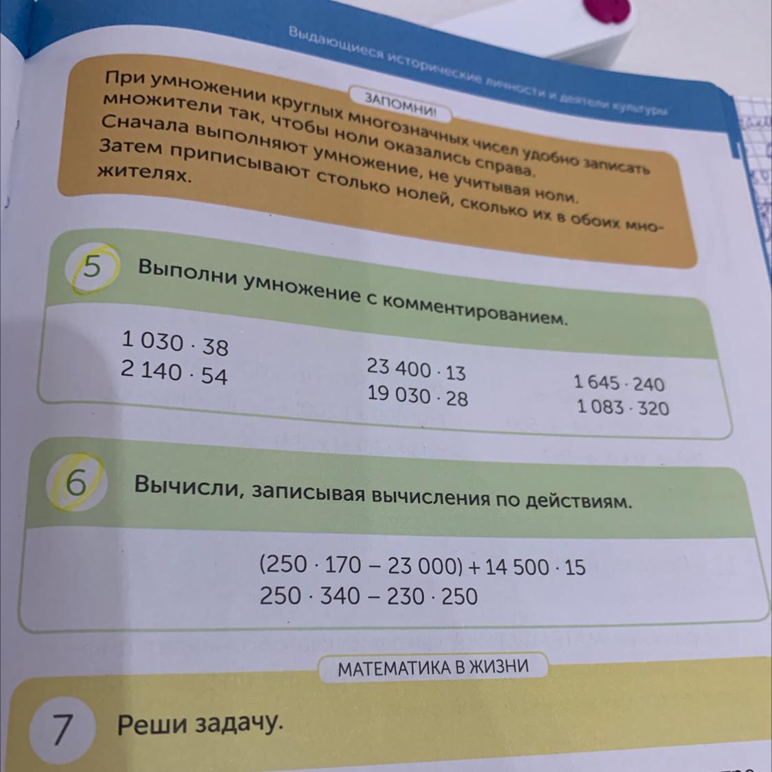 5 задание выполни Умножение с комментированием 1030• 38, 2140• 54, 23 400• 13, 19 030• 28, 1645• 240, 1083• 320.