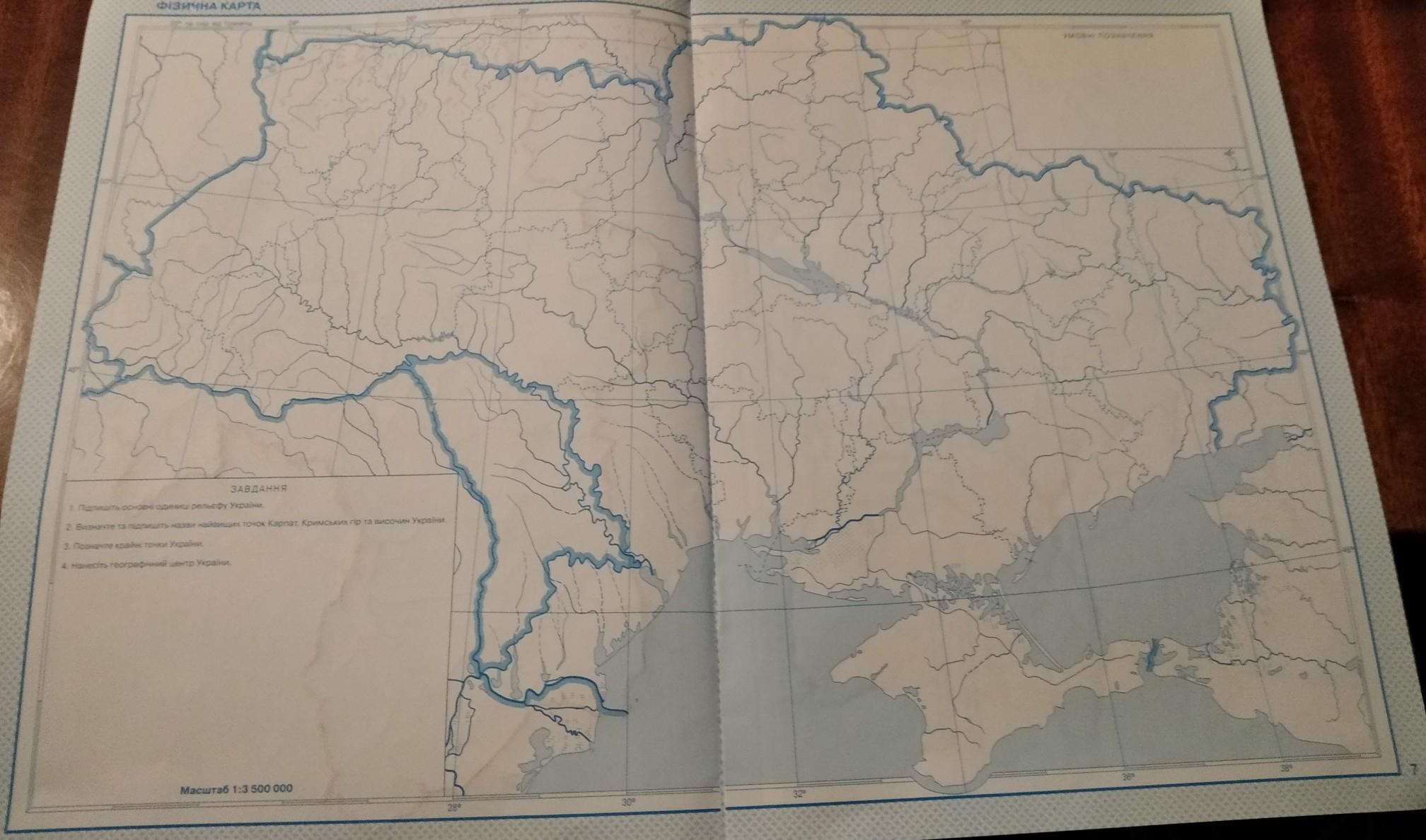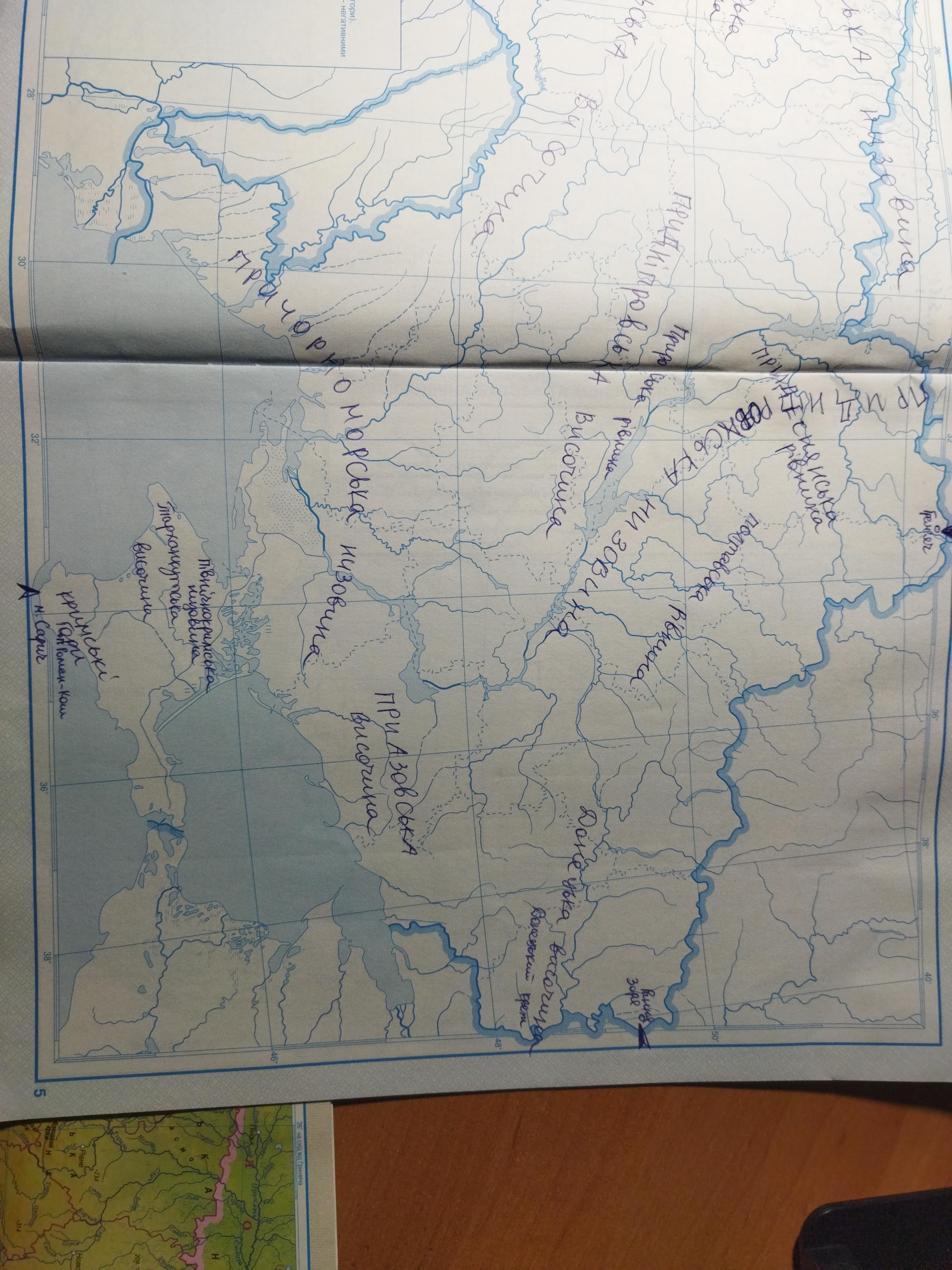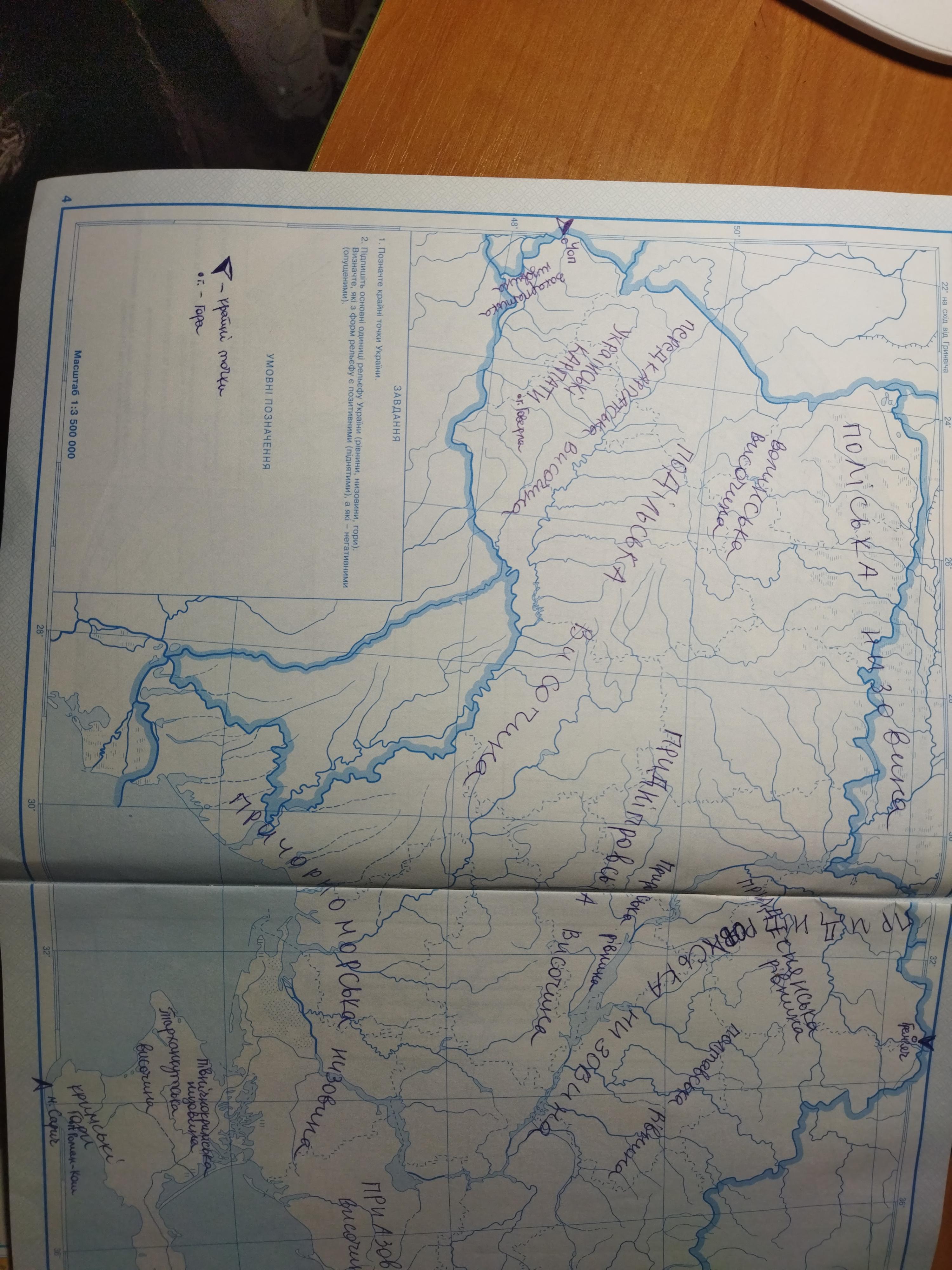 Відповідь на фото. (+ там на карті ще написаний Донецький кряж ,то його не треба писати)