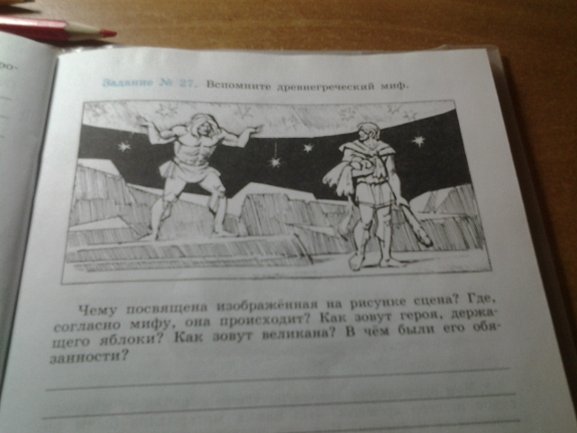 Сцена посвещенна Гераклу и атланту. Происходит на краю света. Держащего яблоки-зовут Геракл. Великана-Атлант. Его обязанности держать небесный свод.