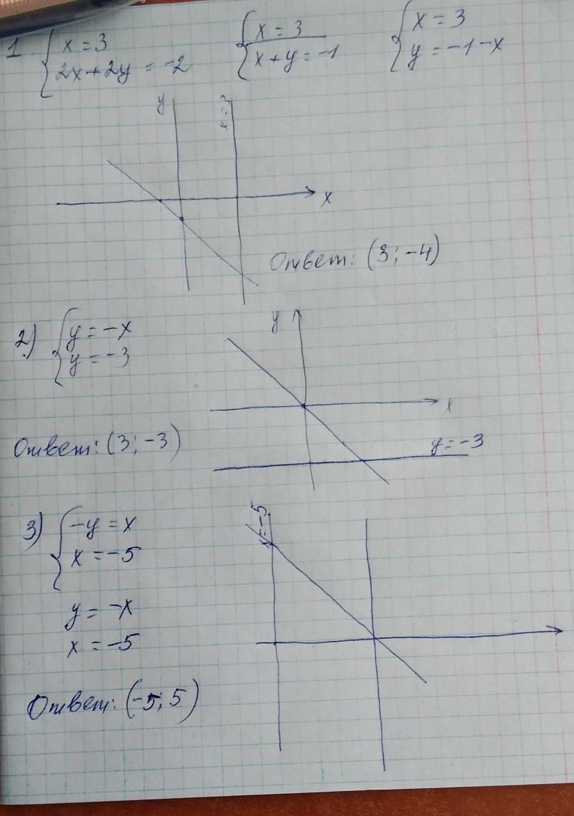 1)реши графически систему линейных уравнений x=3, 2x+2y= -2