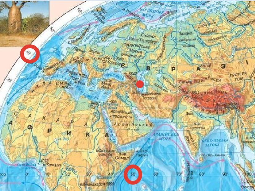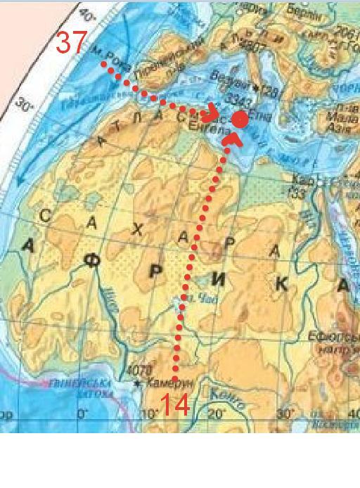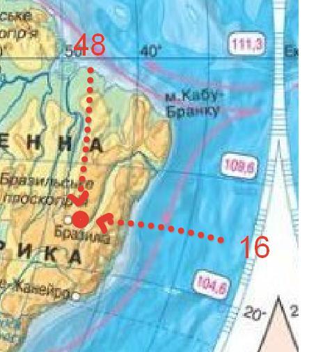 б) 37° пн. ш. 14° сх. д. в) 16° пд. ш., 48° зх. д. Пожалуйста ответьте