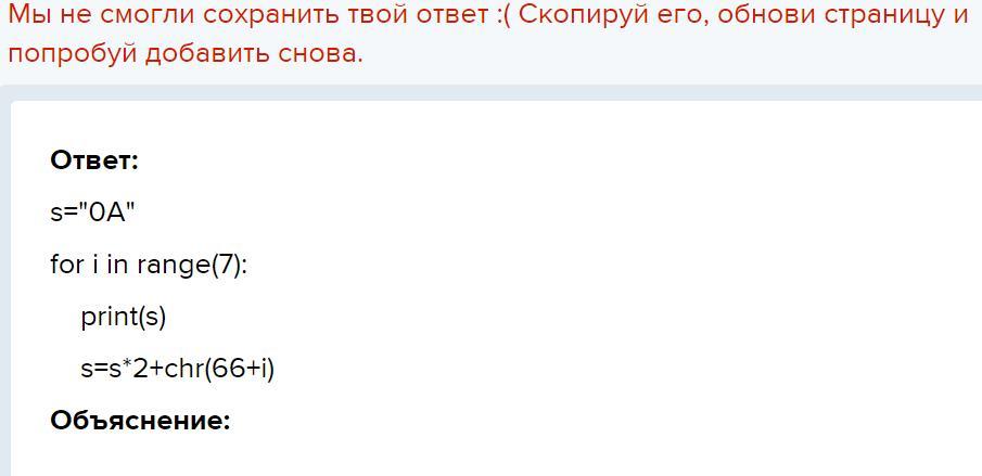 Цепочки символов (строки) создаются по следующему принципу. Строки имеют порядковый номер (i). Первая строка начинается с цифры 0, за которой следует буква, чей порядковый номер в алфавите соответствует значению i + 1. В следующих строках дважды переписывается предыдущая строка и справа приписывается очередная буква латинского алфавита с порядковым номером i + 1.