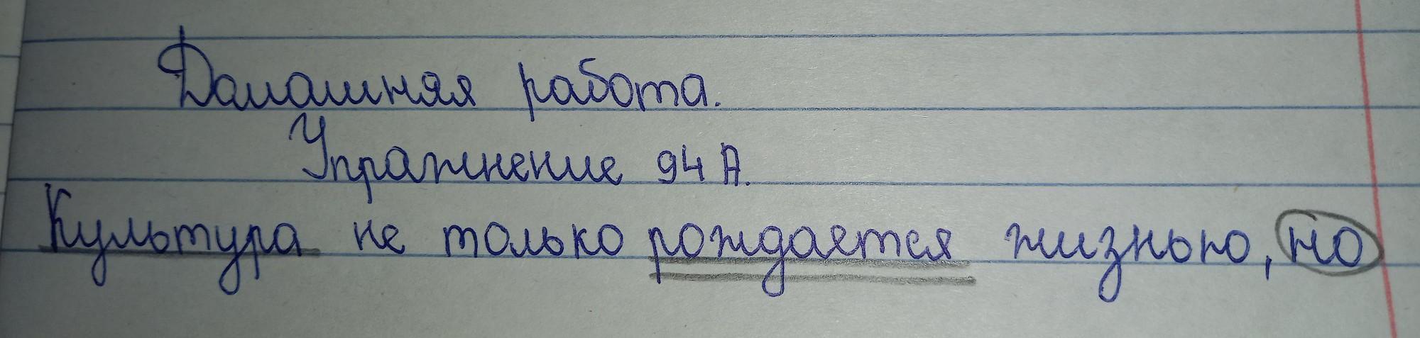 94A. Спишите предложения, расставляя недостающие знаки препинания, вставляя пропущенные буквы, раскрывая скобки. Прокомментируйте рас- становку знаков препинания. Какие значения выражает союз u? Объясните правописание слова так (же). Образец.Липы цветут¹, и) пахнет липовым медом2. (М. М. Пришвин) [' ], u [ 2 ]. (Сложносочиненное предложение, средства связи: интонация, соединительный союз и, в предложении выра- жаются причинно-следственные отношения) 1. Культура (не) только рожда...ся жизнью но и она рожда...т жизнь. 2. В Инди... два ми...иона богов и все они поч...таются. (М. Твен) 3. Вечерние тени уже разл...вались в воздух... да узкая полоска неба алела отбл...ском з...ри. (По И. С. Тургеневу) 4. Мы х...зяева нашей пр...роды и она для нас кл...довая со...нца с великими с...кровищами жизни. (М. М. Пришвин) 5. Одна туча способна погрузить во мрак це- лую рощу одно слово так (же) способно омр... чить величайшее ...астье. (Ж.де Лабрюйер) 6. В Плюшкине стала заметнее обнаружива...ся ску- пость и св...ркнувшая в жес...ких волосах с...дина, верная подруга ее, помогла ей еще больше разви...ся. (По Н. В. Гоголю) помогите пожалуйста
