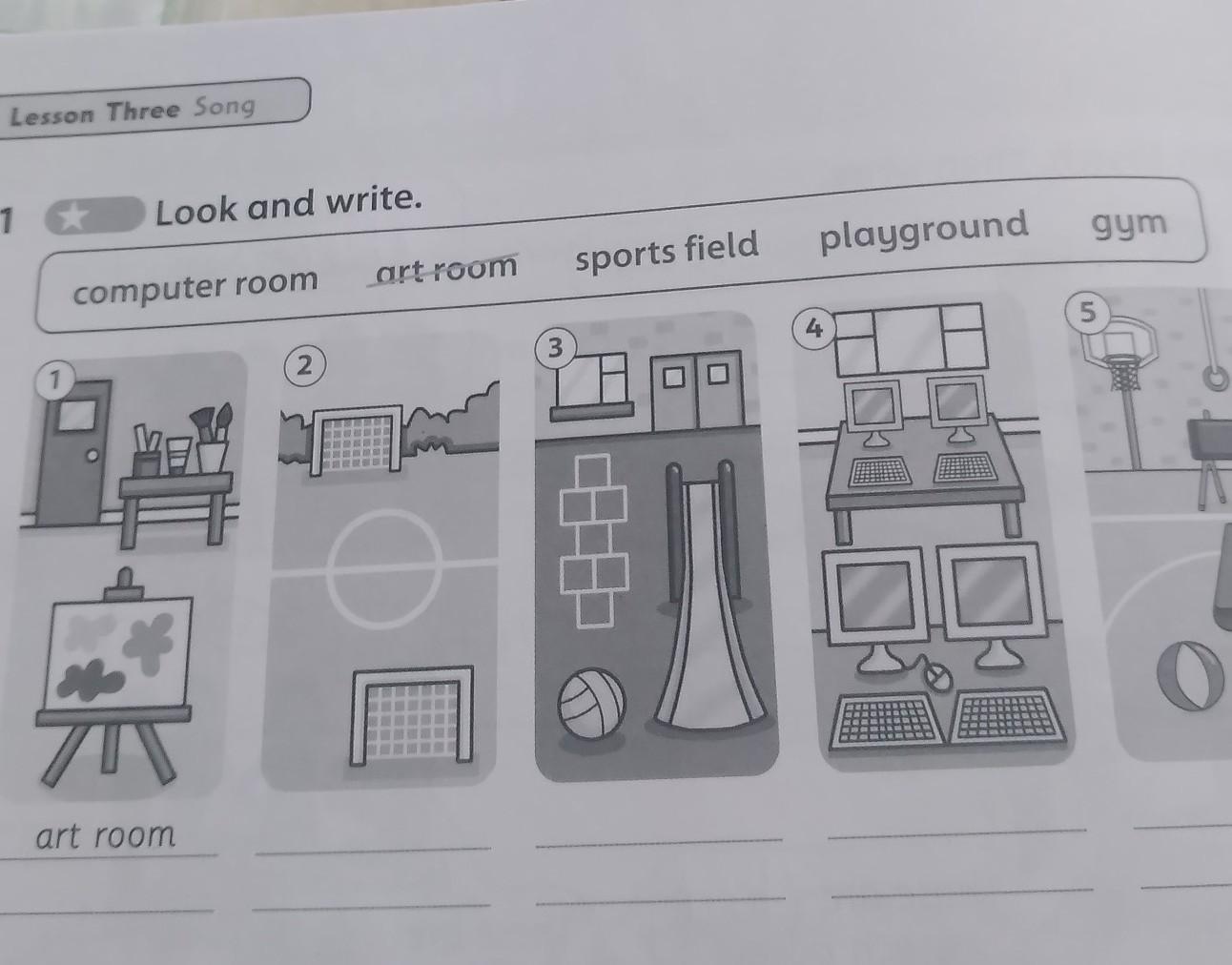 1 Look and write. computer room T art room 2 art room 3 sports field 0 playground 4 ISH gym O