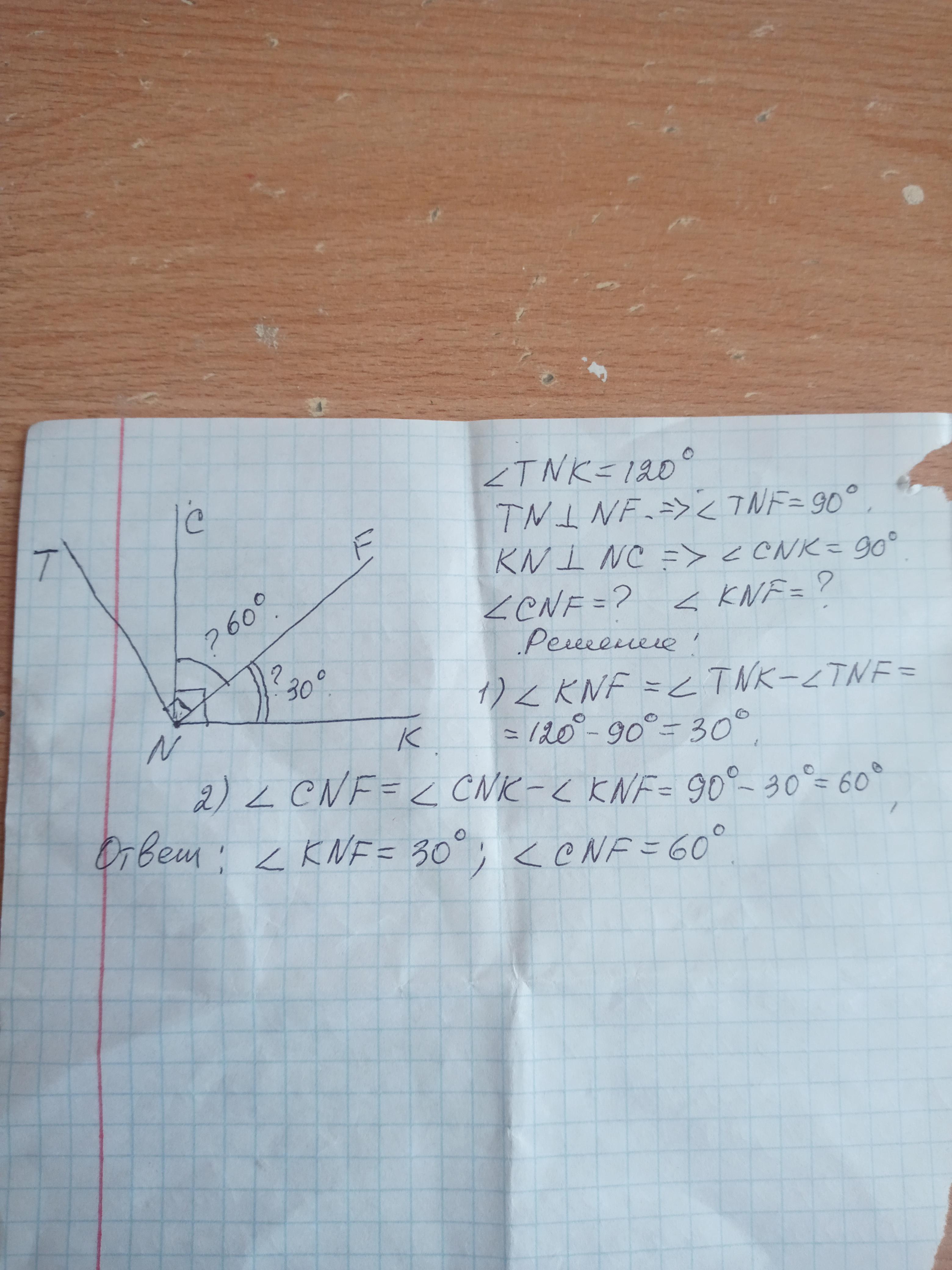 Угол TNK равен 120°. Между сторонами этого угла проходят лучи NF и NC так, что