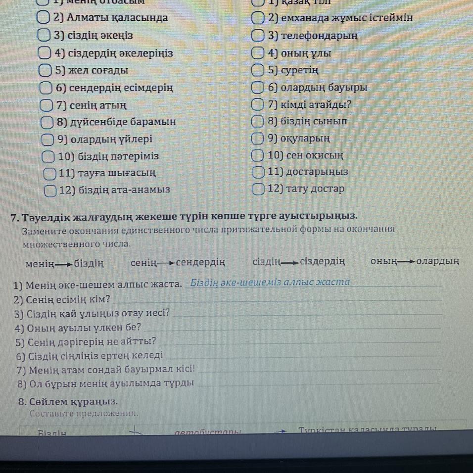 6) Сіздердің сіңілдеріңіз ертең келеді.