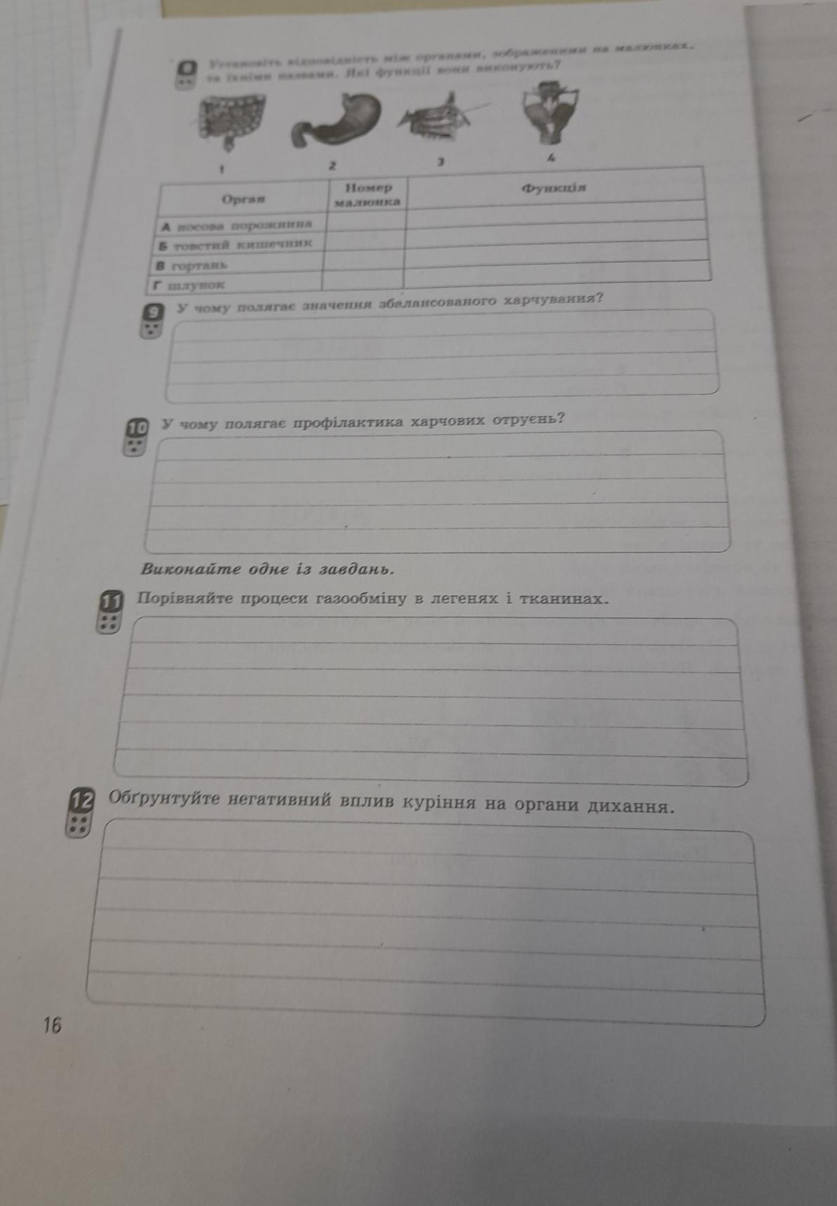 7 Установіть відповідність між органами, зображеними на малюнках, та їхніми назвами. Які функції вони виконують? 1 Орган А печінка Б альвеоли в бронхи Г тонкий кишечник 2 Номер малюнка 3 Функція