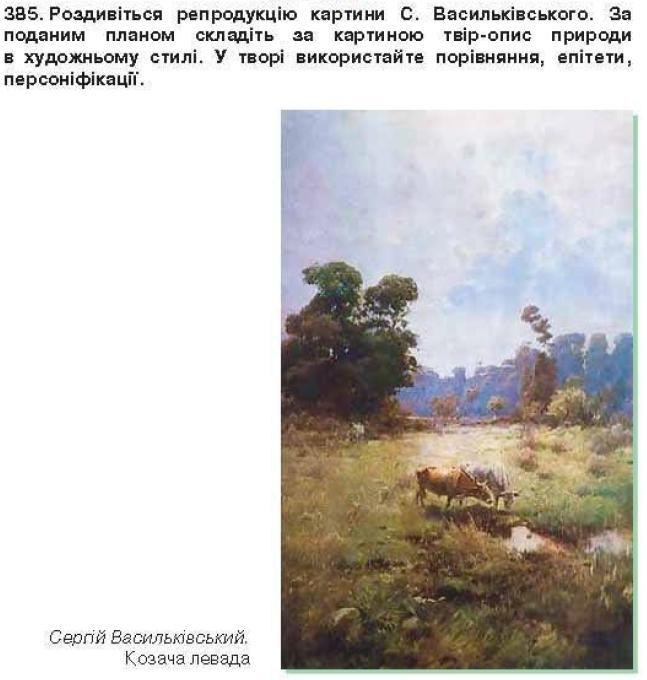 Для своєї картини С. Васильківський вибрав найбільш типовий для України краєвид. Безкраї простори нив, луки, вкриті густою травою, ліси та переліски, насичені яскравими барвами.