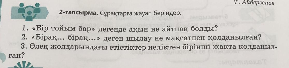 2-тапсырма. Сұрақтарға жауап беріңдер.
