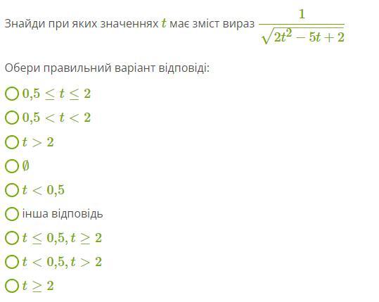 t має зміст коли (2t²-5t+2)>