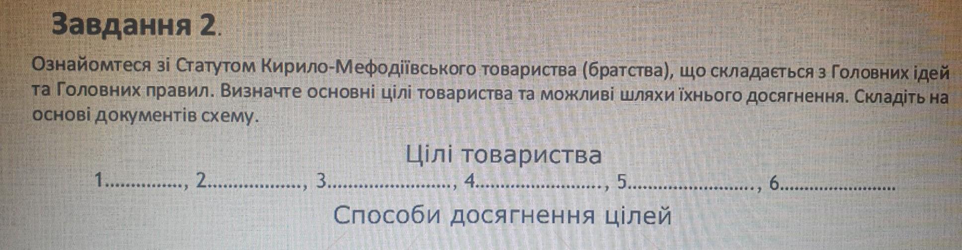 Ознайомтеся зі Статутом Кирило-Мефодіївського товариства (братства), що складається з Головних ідей
