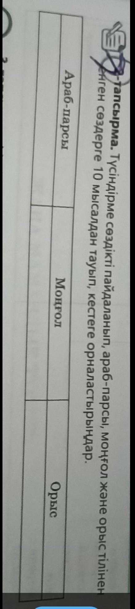 орыс:кәмпит,тәрелке,пойыз,паравоз,самаурын,көләш,бөтелке,пошта,жәшік,бүркіт.