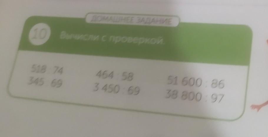 ДОМАШНЕЕ ЗАДАНИЕ 10 Вычисли с проверкой. 518:74 345:69 464:58 3 450:69 51 600:86 38 800:97 НАЗОВИ ОБЪЯСНИ Фото пж 4 Класс 100 б