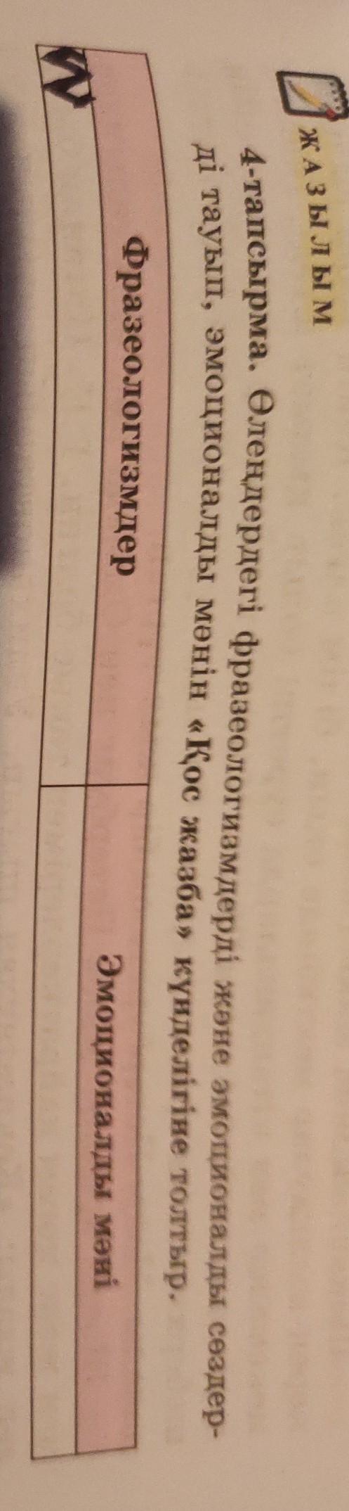 4-тапсырма. Өлеңдердегі фразеологизмдерді және эмоционалды сөздерді тауып, эмоционплды мәнін "Қос жазба" күнделігіне толтыр.