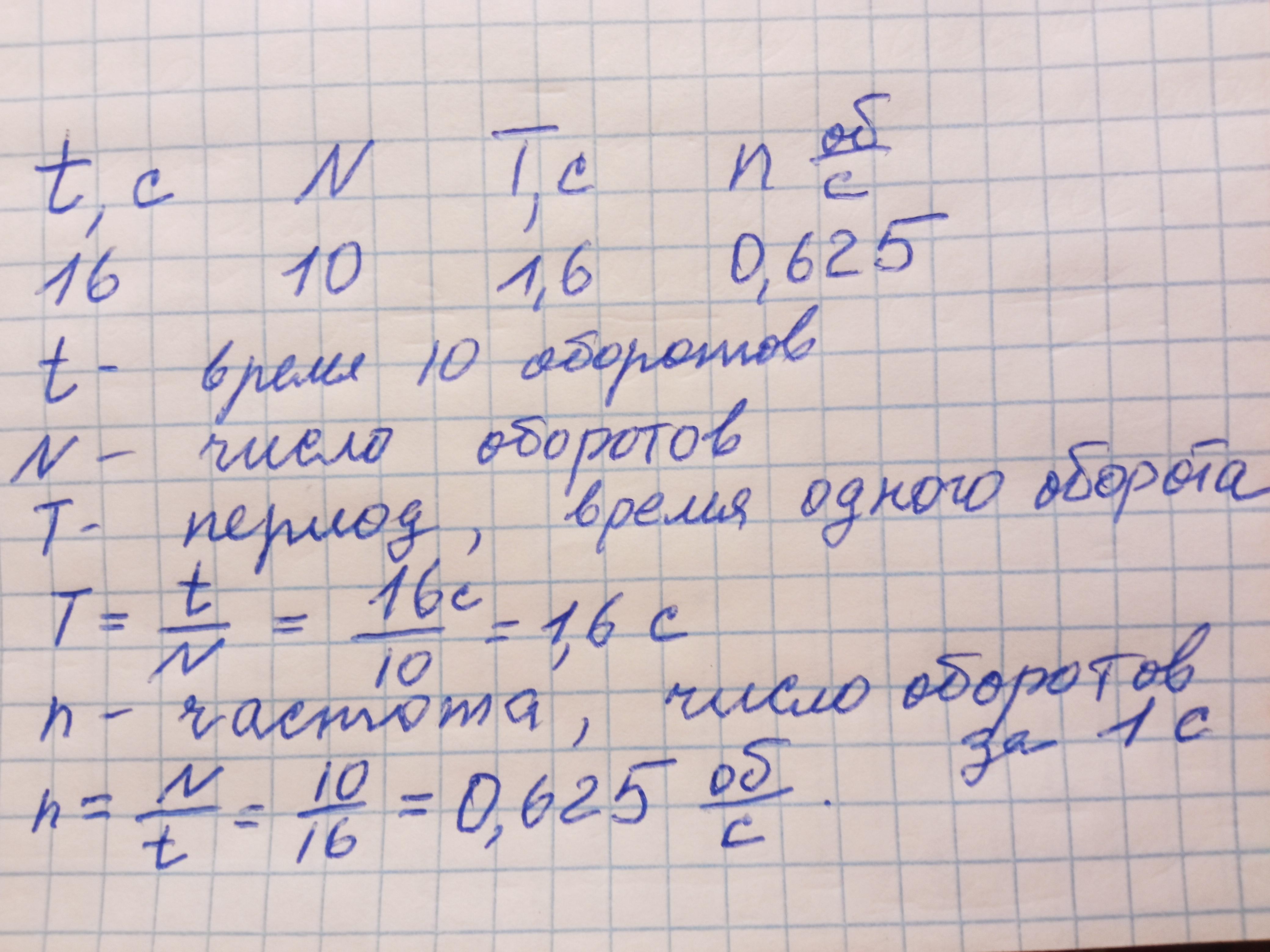 За одну секунду тело совершает 0,625 оборотов. n=1/T. T=1/n.