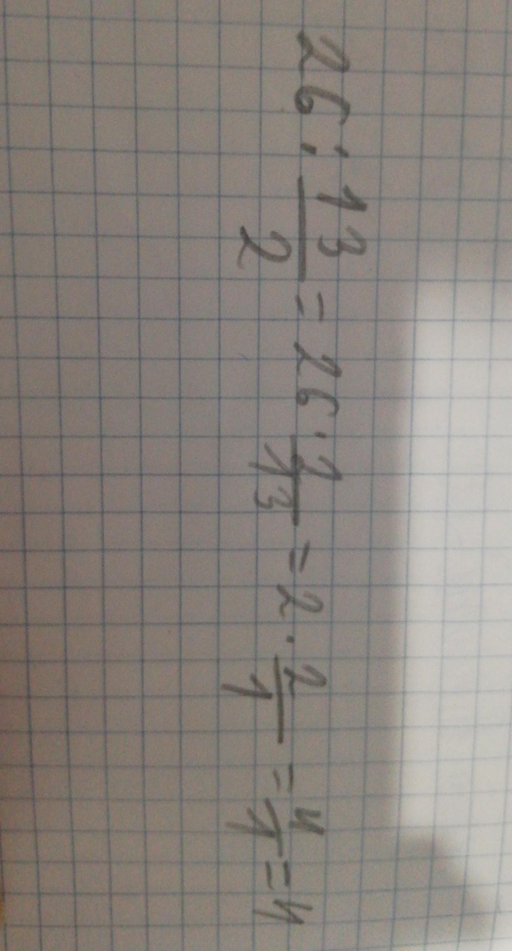 26 : 13/2 = 26 * 2/13 = 2 * 2/1 = 4/1 = 4