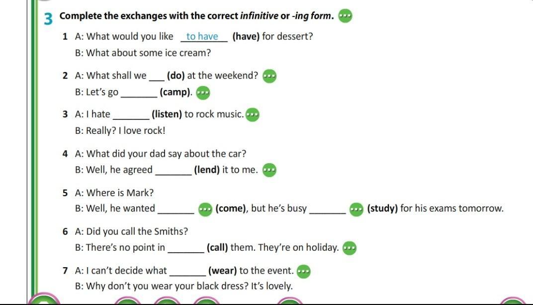 4 A: What did your dad say about the car? B: Well, he agreed to lend it to me.