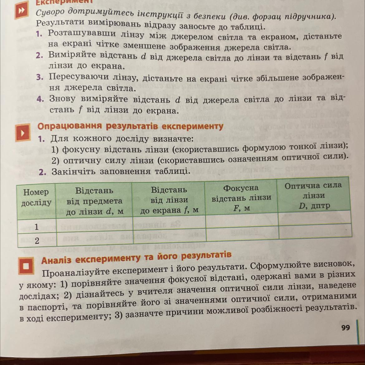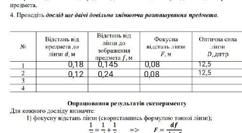 1) фокусну відстань лінзи (скориставшись формулою тонкої лінзи);
