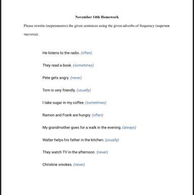 Please rewrite (перепишите) the given sentences using the given adverbs of frequency (наречия