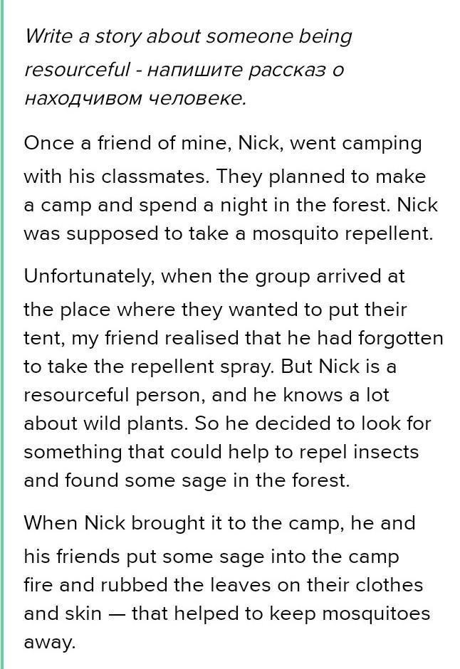 помогите пожалуйста с английским,нужно написать рассказать про находчивого человека