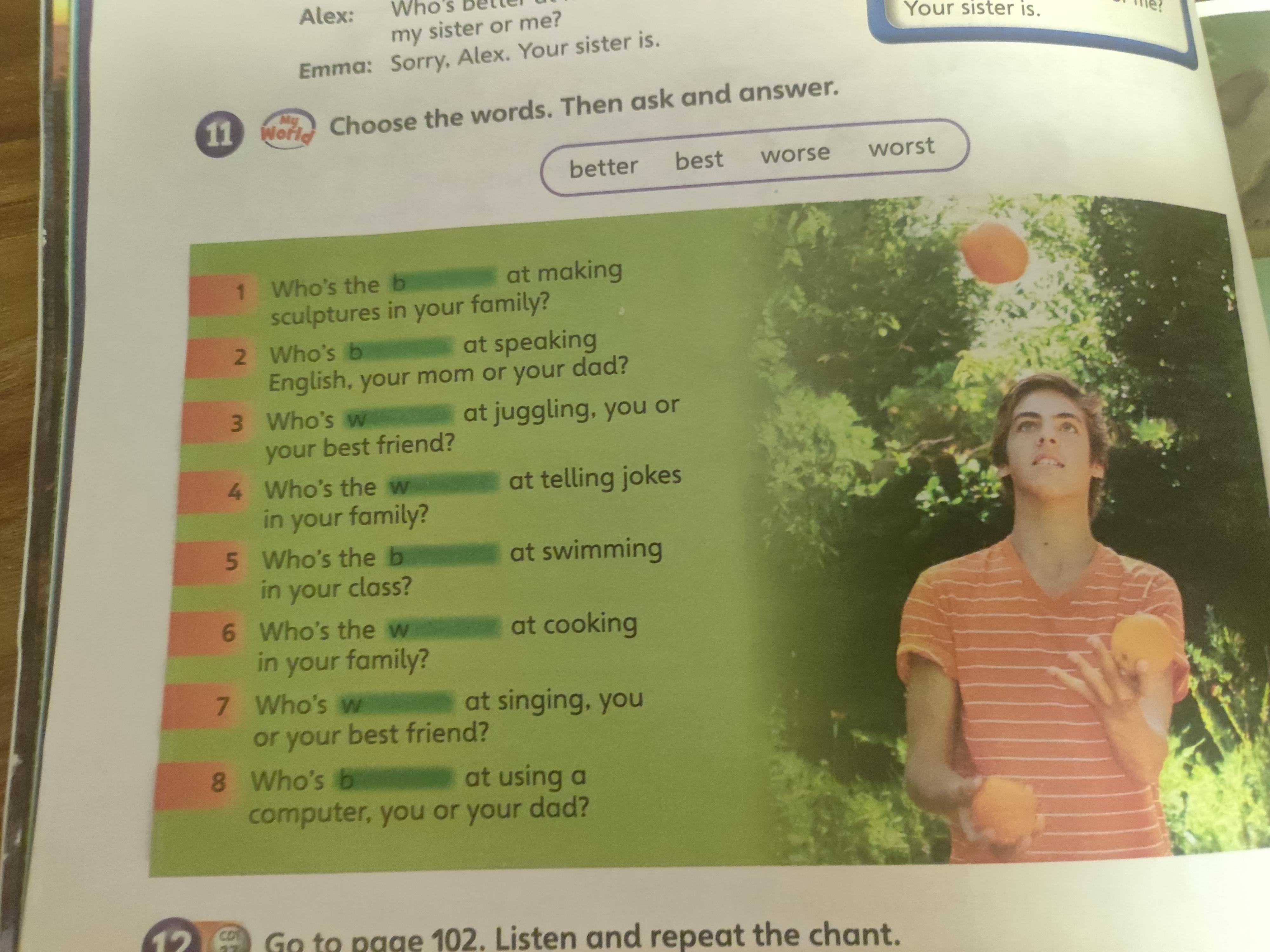 My best friend is worse at juggling than me.