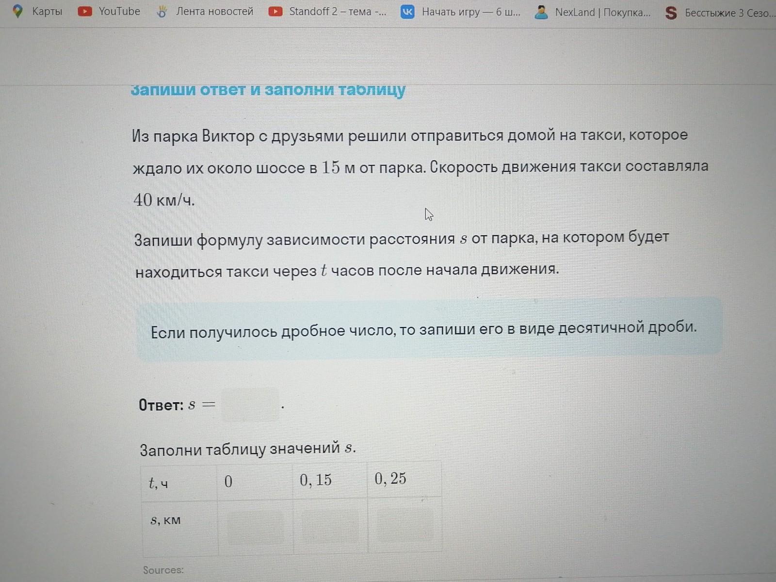 Запиши формулу зависимости расстояния в от парка, на котором будет