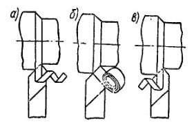 різця позитивний, то завивающаяся стружка відходить вправо при куті нахилу, що дорівнює нулю, стружка відходить в напрямку, перпендикулярному головній різальній кромці рис. б; при негативному куті нахилу стружка відходить вліво рис. ст.