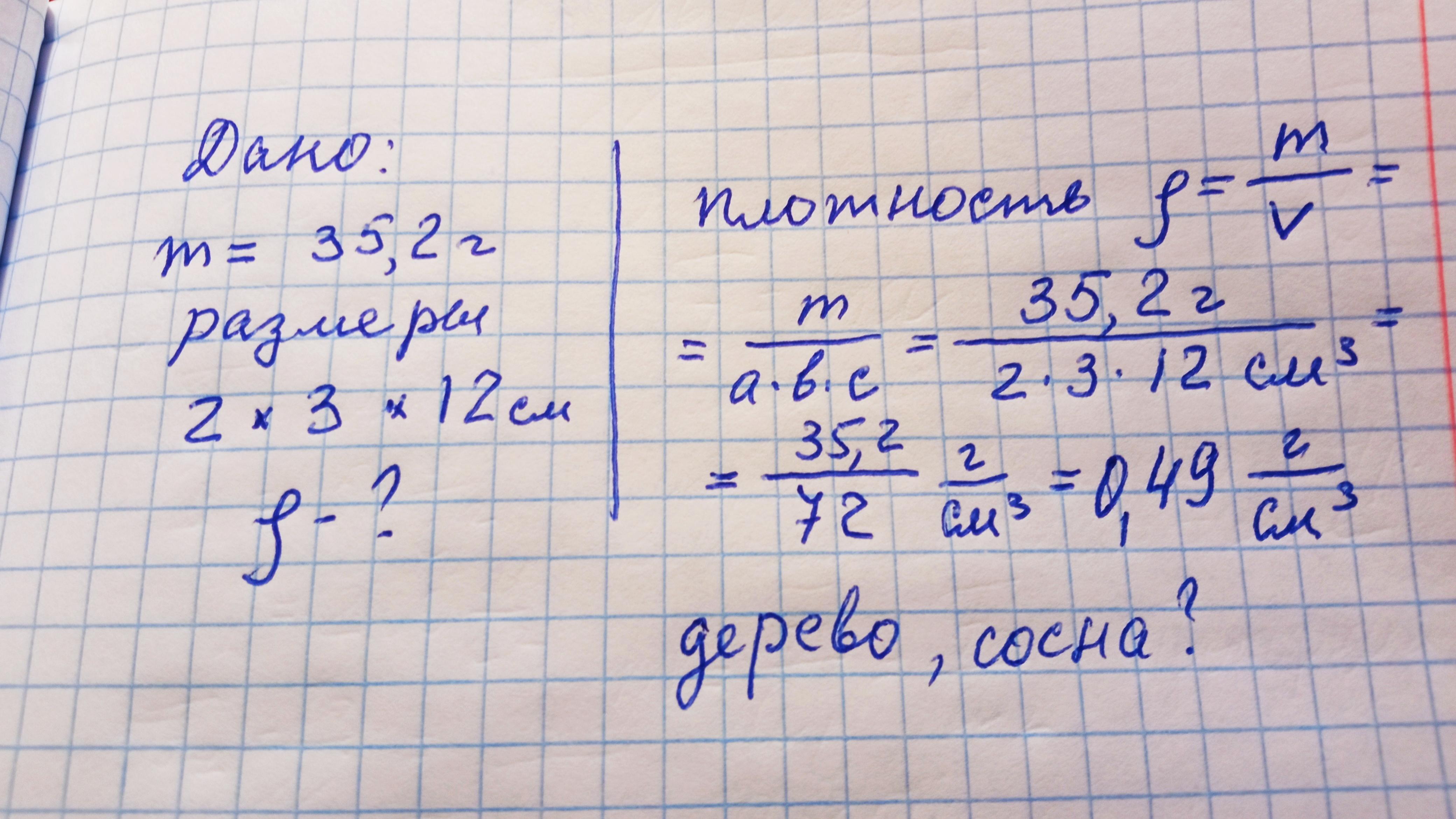 размеры 2×3×12 см. Определить, из акого вещества он сделан.
