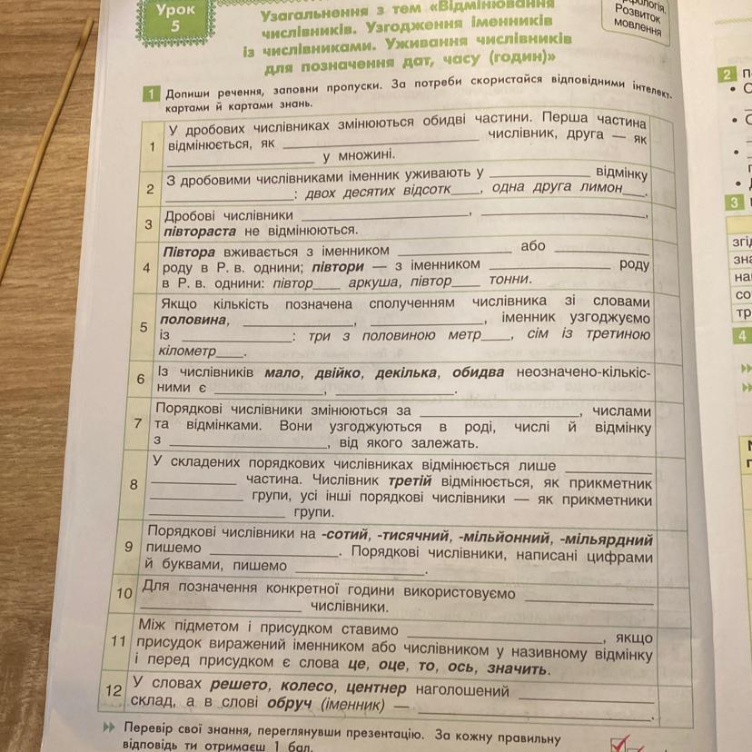 1 Допиши речення, заповни пропуски. За потреби скористайся відповідними інтелект-