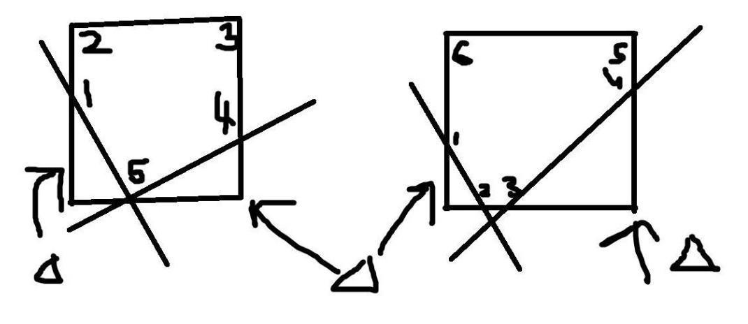 і п'ятикутник, а в другому — 2 трикутники і шести-