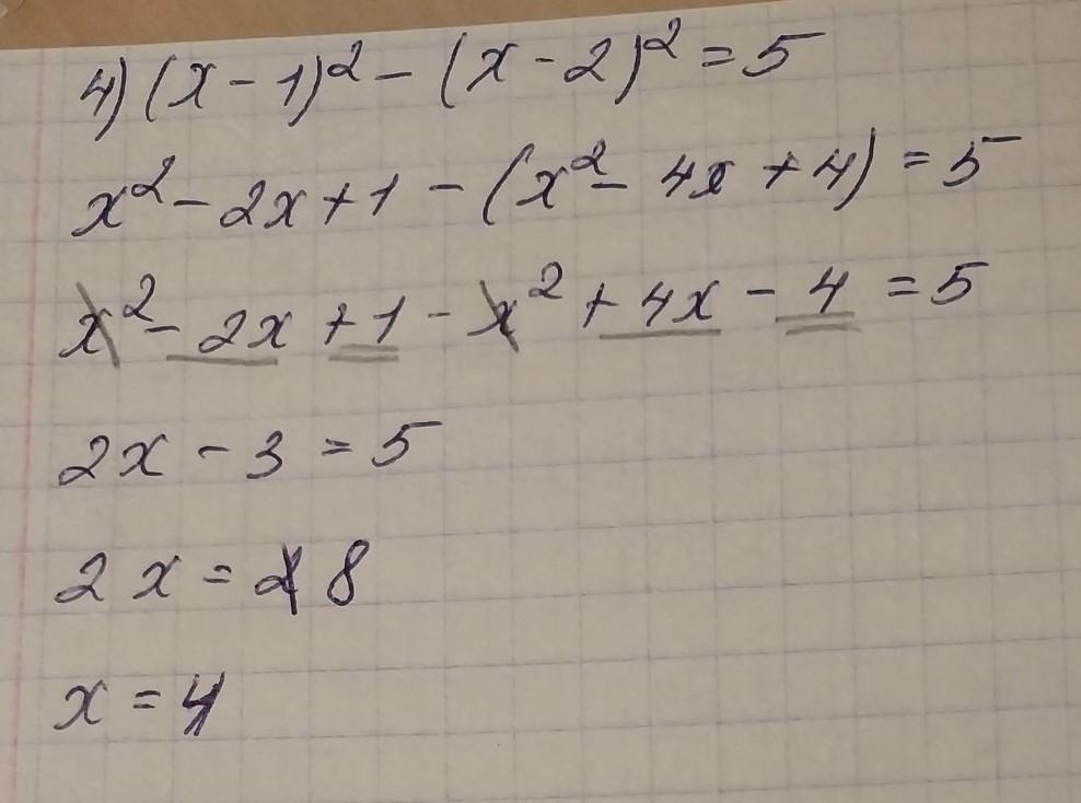 Решите уравнение. 1) (x + 3)² - (x + 1)2 = 12 2) (x − 3)²-(x + 2)² = -25 3) (x + 2)²-(x-1)³ = 15 4) (x-1)²-(x - 2)² = 5 (пожалуйста решите с проверкой дам 30 баллов)