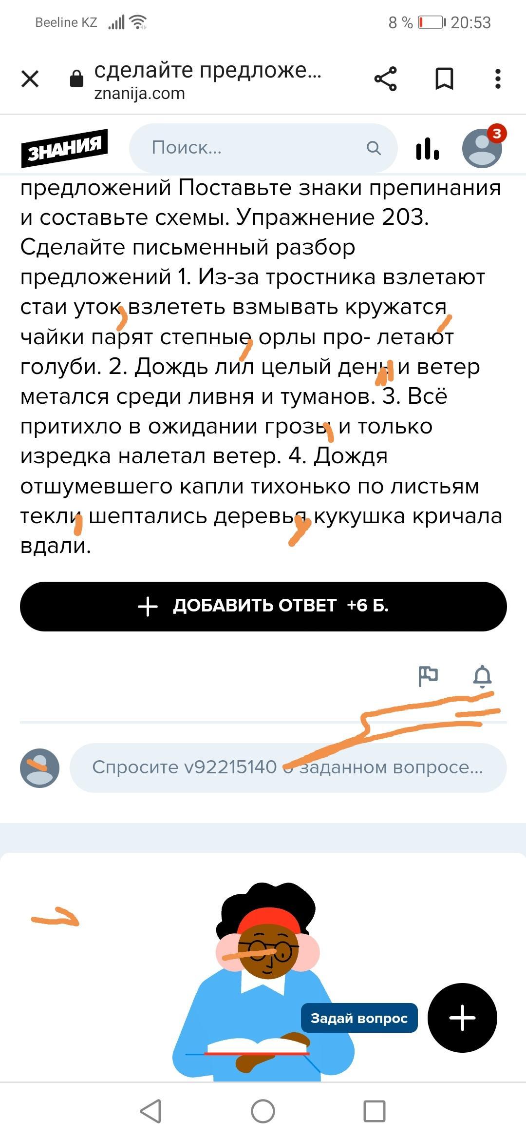сделайте предложение разбор предложений Поставьте знаки препинания и составьте схемы. Упражнение 203. Сделайте письменный разбор предложений 1. Из-за тростника взлетают стаи уток взлететь взмывать кружатся чайки парят степные орлы про- летают голуби. 2. Дождь лил целый день и ветер метался среди ливня и туманов. 3. Всё притихло в ожидании грозы и только изредка налетал ветер. 4. Дождя отшумевшего капли тихонько по листьям текли шептались деревья кукушка кричала вдали.