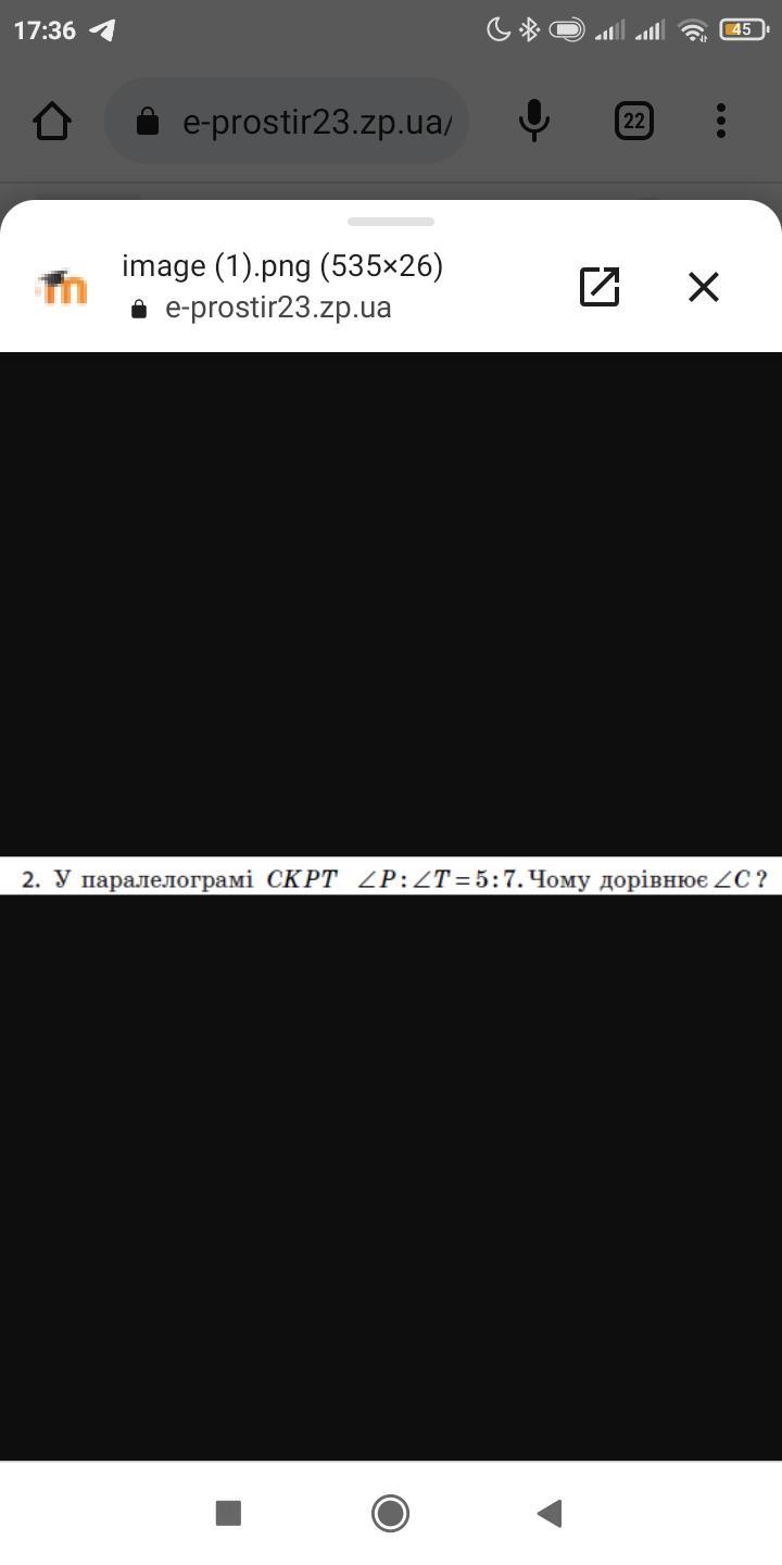 У паралелограмі CKPT ∠P:∠T=5:7 Чому дорівнює ∠С-?