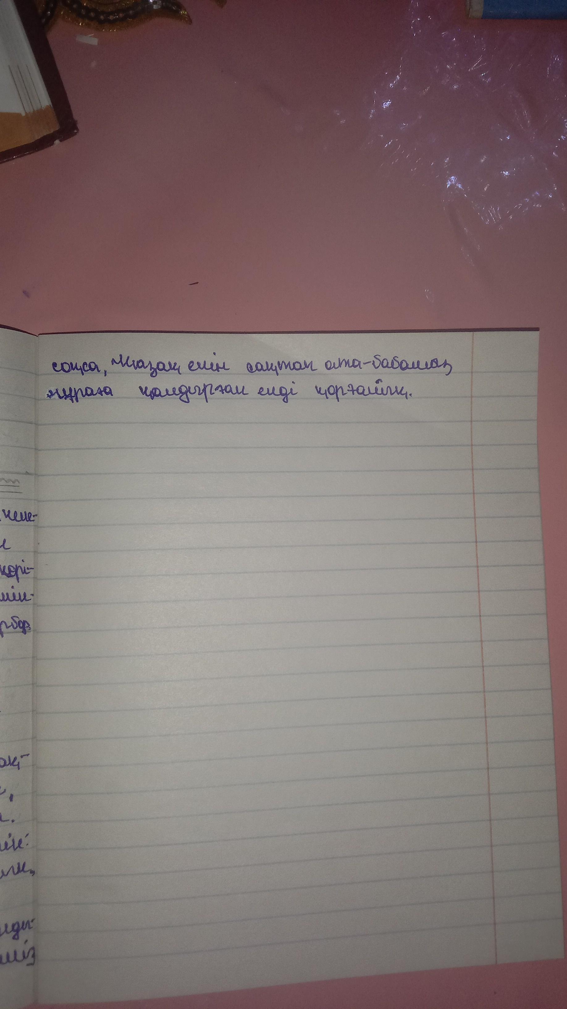 4. Олен мотiнi туралы оз пiкiрiн мен досынның пікірін салыстырып, томенде берілген үлгі бойынша талқыландар. Бiрiншi сөйлем: «Менің ойымша, ...». Екінші сөйлем: «Мен оны былай түсiндiремiн ...» . Үшінші сөйлем: «Оны мына фактілермен, мысалдармен дө лелдей аламын ...». Сонгы сойлем: «Осыған байланысты мынадай қорытындыға келдiм: .....