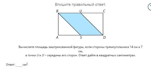 т.к. точки U и S - середина, то образуются квадратыUCDS и BUSA со стороной 7 см. Т.к. треугольники занимают ровно половину квадратов, то получаем: