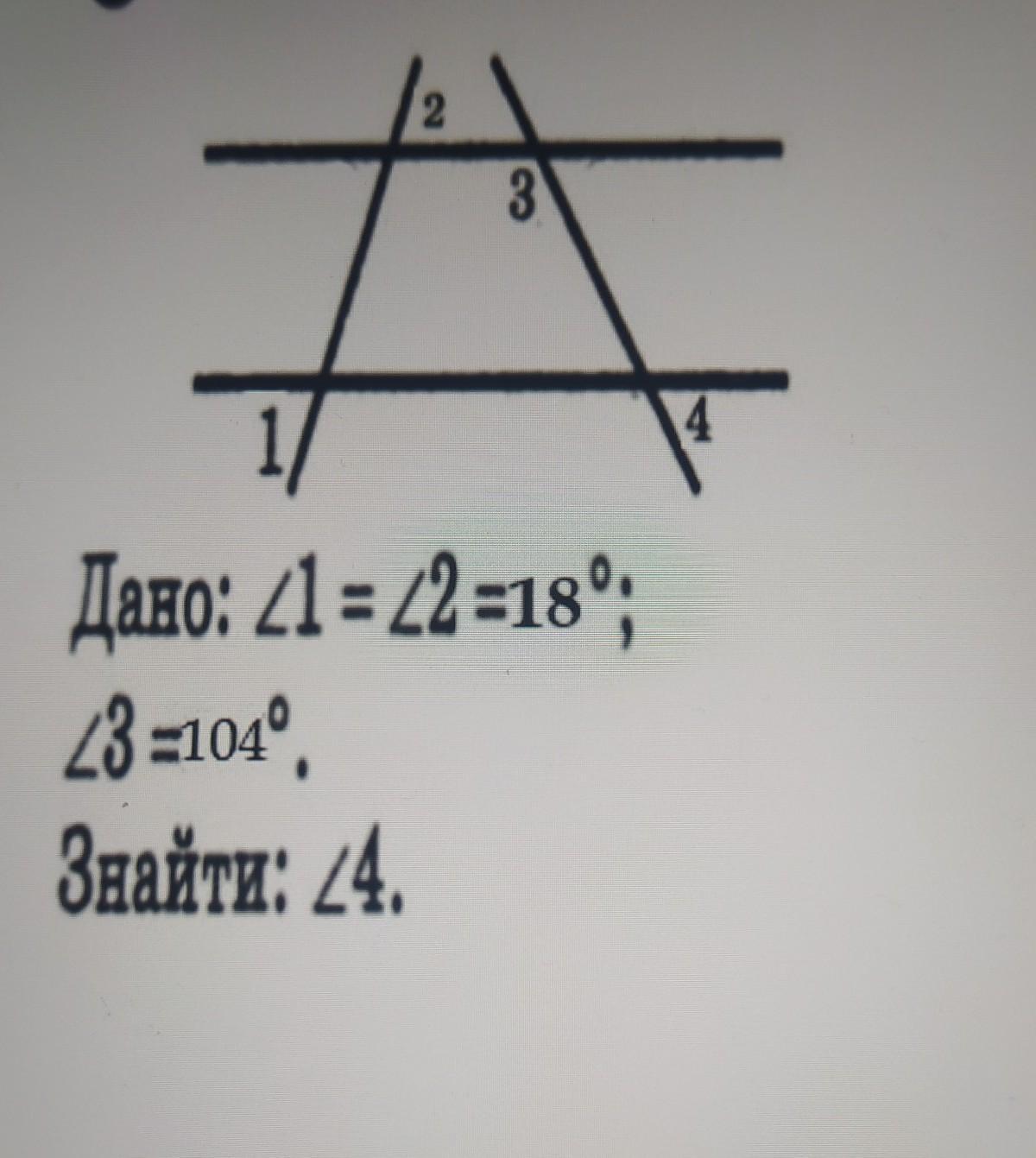 Угол противоположный углу 2 называется вертикальным и тоже равен 18 градусов