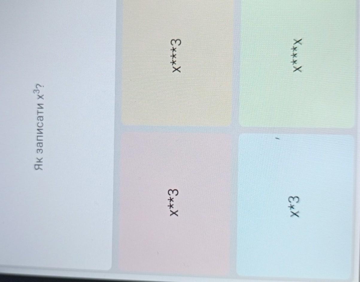Операция возведения в степень в языке Python обозначается двумя звездочками, которые располагают между возводимым числом (основанием) и степенью. Правильный ответ показан на розовом фоне.