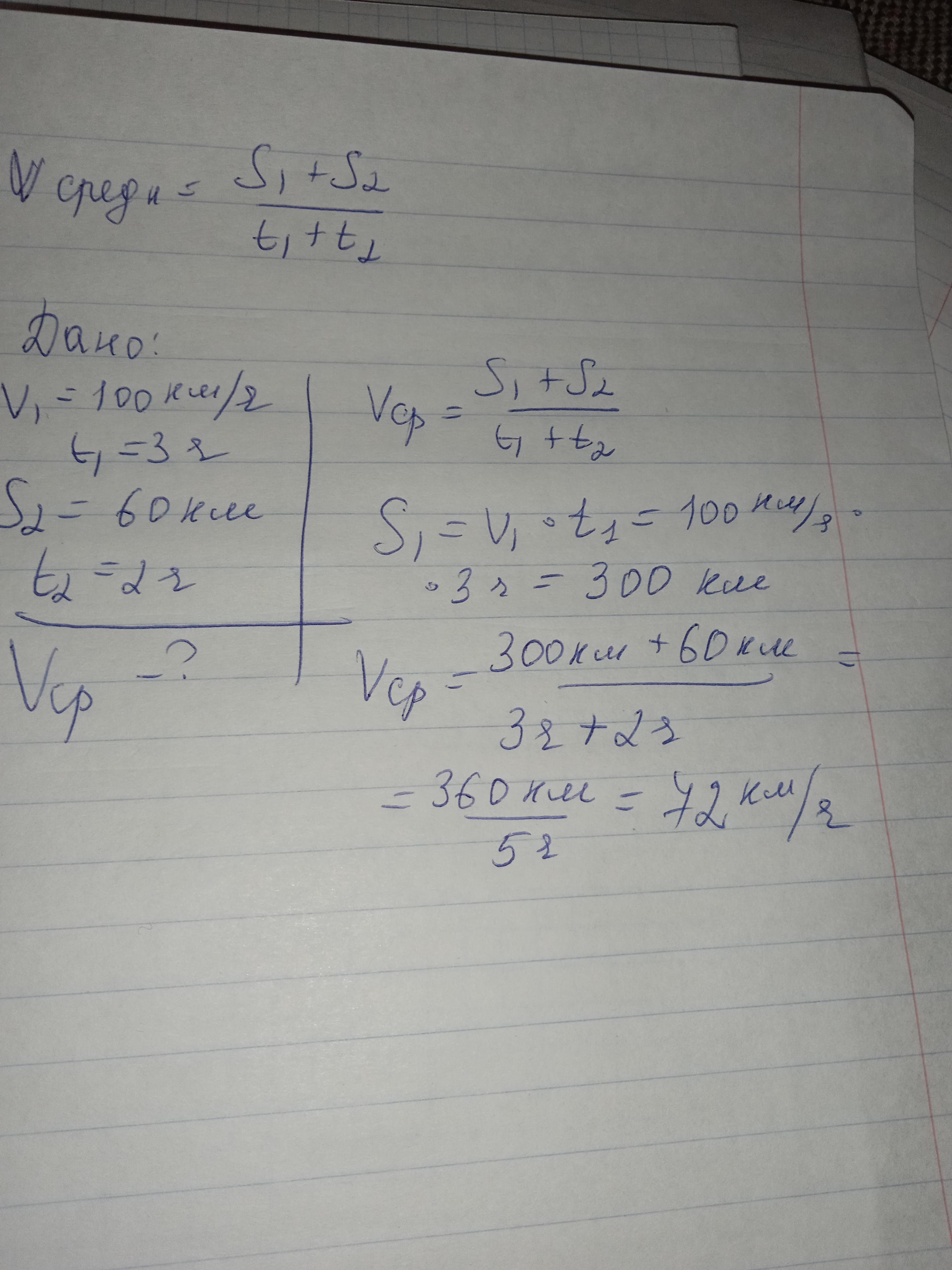 Автомобиль ехал по автомагистрали со скоростью 100 км/ч в течение 3 часов, а затем проехал по сельской местности ещё 60 км за 2 часа. Определите среднюю скорость автомобиля на всём пути.