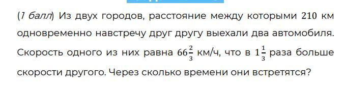 1) 66 2/3 : 1 1/3 = 200/3 : 4/3 = 200/3 * 3/4 = 50/1 * 1/1 = 50/1 = 50 (км/ч) - скорость 2 автомобиля
