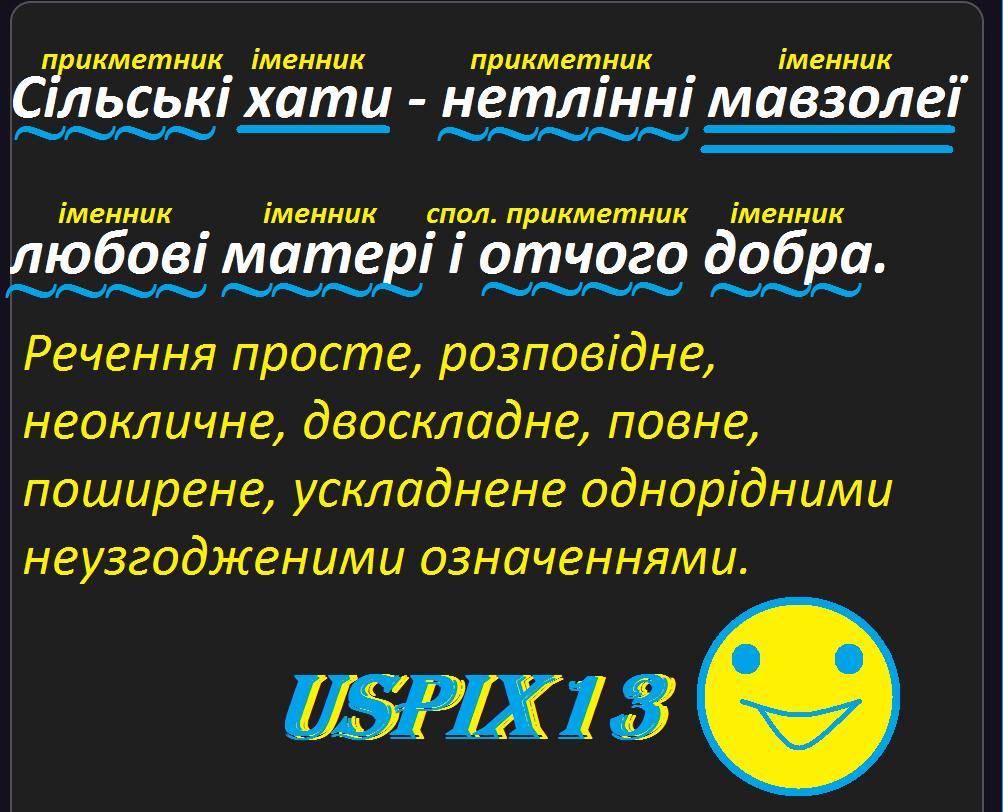 Виконайте синтаксичний розбір речення (підкресліть усі члени речення, надпишіть над кожним словом частину мови, дайте загальну характеристику реченню).