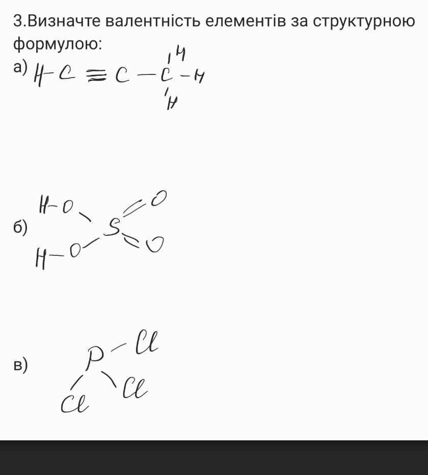 Одна рисочка - це зв'язок між атомами. Необхідно порахувати скільки зв'язків у кожного з атомів.